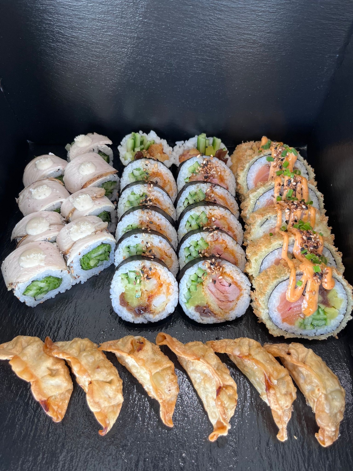 majonez lub serek, ogórek, oshinko, kanpyo -